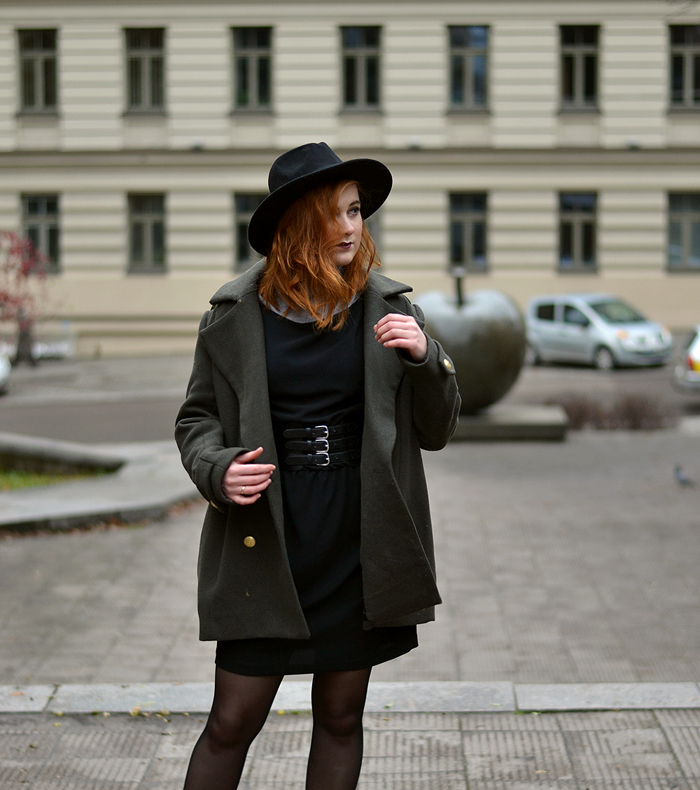 Paltas – H&M (sh) | Suknelė – Zara (sh) | Skrybėlė – Zaful | Batai – Deichmann | Diržas – H&M