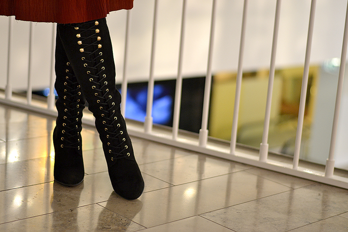 Dalinuosi derinio nuotraukomis, kaip atrodžiau pažindindamasi su Smashbox (makiažas Smashbox visažisto) ir paskui vėliau vykdama į Kenzo x H&M peržiūrą. Šį kartą atspirtimi tapo mano naujieji Deichmann batai – norėjau kad jie čia būtų ryškiausia detalė. Su tokiais ilgais ir suvarstomais batais nenorėjau rodyti kojų, todėl pasirinkau midi ilgio sijoną, kuris ir baigiasi grynai ties batais. Nemeluosiu, pirminė mintis buvo įšokti į languotą mini sijoną, tačiau pasimatavusi supratau, kad blogai blogai ir dar kartą blogai. O ir mokinukės vaibas visiškai netiko prie tos dienos nuotaikos. Visa kira akivaizdu – giminingi aprangos tonai ir pabrėžtas liemuo (šį diržą naujutėlį už kelis eurus nučiupau humanoje – score! ). Kaip jums toks derinys? 🙂