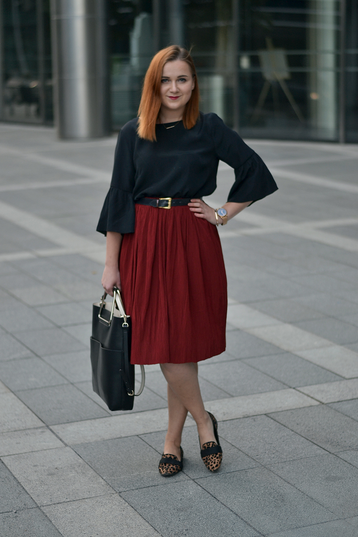 Palaidinė – Lindex | Batai – Zara (seni) | Rankinė – Zara | Sijonas, Diržas – SH | Kaklo papuošalas – Michael Kors | Laikrodis, Apyrankė – Marc by Marc Jacobs, Fossil (Mados Prieskoniai)