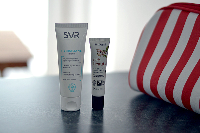 Naujas atradimas veido odai – SVR Hydraliane intensyviai drėkinantis veido kremas. Labai malonios konsistencijos tepantis, be jokių įkyrių kvapiklių ir suteikiantis odai gerą drėkinimo dozę. Gamintojai žada, kad jis gali tapti puikiu makiažo pagrindu, tačiau man norisi daugiau to „slidumo” ir pagalbos tepantis makiažo pagrindą (ypač jeigu jis sunkesnis, ne fluidas). Paakiams jau kurį laiką naudoju Oriflame Eco Beauty kremuką, apie jį pasakojau čia.