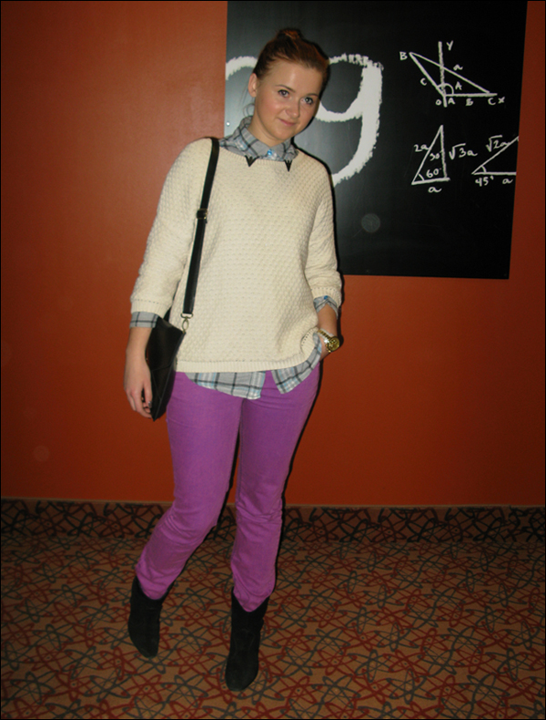 Kelių valandų pasivaikščiojimui po Rygą ir pietums pasirinkau kelis sluoksnius ir patogumą 🙂 Spalvota ir labai patogu…na, batus būčiau mielai pakeitus į conversiukus arba guminius, nes pasivaikščiojimas tikrai išvargino, ir oras buvo baaaisus 🙂