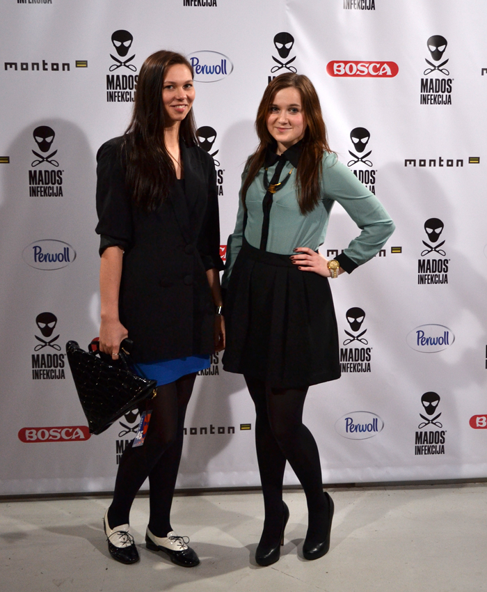 „Press” kortelė leido šmirinėti po ŠMC dar gerokai prieš renginį ir pajausti ką reiškia būti fotografei ir fotografuoti prie sienelės pozuojančius įvairiai pagarsėjusius Lietuvos šou ir ne tik atstovus. Beje, šita visa „stok, pozuok, eik toliau” situacija labai kvaila ir liūdinanti pasirodė… Stovint FOTO ženklu pažymėtoje vietoje, matant renginio salės link einančių stilingų žmonių pulkus ir NESTOJANČIŲ nusifotografuoti, tiesiog skauda širdį, nes kažkokios matai Kauno ponios nepasikuklina sustot, papozuot, ir patekt į visus naujienų portalus ir leidinius, nors jeigu būtų mano valia, aš jų niekur nedėčiau..visur antraštės skelbia : „stilingiausi mados infekcijos svečiai”, nors tie tikrai išskirtiniai ir tikrai gerą stiliaus pojūtį turintys žmonės tiesiog…pasikuklina stabtėlti 🙂 (aišku nesakau kad visiškai visi stilingieji nesustoja, nėra dar absoliučiai beviltiška padėtis 🙂 )Užtat nebūtume mes blogerės jei būtume pasiskuklinusios stabtelėti 😀 Nelaikau savęs nei stilinga nei ką, bet juk smagu! :)) Rezultate – Brigitte (Fashion Chopper), aš ir Inga (Style makes sense) Delfyje ir Lryte 🙂