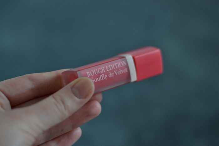 Bourjous Rouge Edition / Souffle de Velvet (mano spalva 03 VIPeach)- raudonos spalvos naudojimo išimtis. Sufle primenanti lūpdažių tekstūra nesuteikia labai intensyvios spalvos, pradžioje dažantis gali pagalvoti kad kažkas su tais dažais ne taip (man ir daug kartų naudojant vis dar nepatinka pirmojo dažų sluoksnio tepimas – kažkoks nematomas), tačiau po antro sluoksnio išgaunama graži rausva spalva, o ir patys dažai tampa matiniais ir laikosi super gerai! (Šie dažai atlaikė Gabrieliaus rankytės išbandymą ir liko būtent ten kur juos ir užtepiau). Dar patinka tuo, kad lyginant su kitais gerai išsilaikančiais lūpų dažais- tu tiesiog pamiršti kad jie yra ant tavo lūpų.