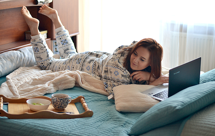 O smulkmenų, kuriomis galite pasimėgauti šį savaitgalį, yra visa krūva ! Išsivirkite puodelį karšto šokolado, o kad būtų dar fainiau, būtinai jam nusipirkite naują, patį gražiausią puodelį, kokį tik pavyks rasti. Susikurkite sau žurnalo paskaitymo (serialo žiūrėjimo) kampelį pinterestiškai jaukiai – kuo viskas vizualiai gražiau, tuo viduje smagiau (man bent jau) : gražus padėklas kavai/karštam šokoladui ir užkandžiams ar pusryčiams, jauki minkštutėlė antklodė ir pagalvėlė (maniškis rinkinukas iš Dormeo ) bei pati patogiausia ir jaukiausia apranga kokią tik pavyks rasti. Maniškis kombinezonas/pižama iš kajamaz.com – miegoti labai per šiltas, bet jaukiai laiką leisti namuose – pats tas. Labai patogus ir minkštutis lyg pliušinis meškiukas, o mano Gabrielius net pradėjo juoktis iš manęs pamatęs su juo. Tai sakyčiau, labai puiki namų laisvalaikio apranga 🙂